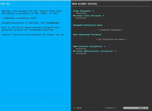You can skip for the cluster virtual IP address, so now we will move with the setup of the password required. Enter the passwords for the operating system “Linux password” and the “Administrative Passphrase”