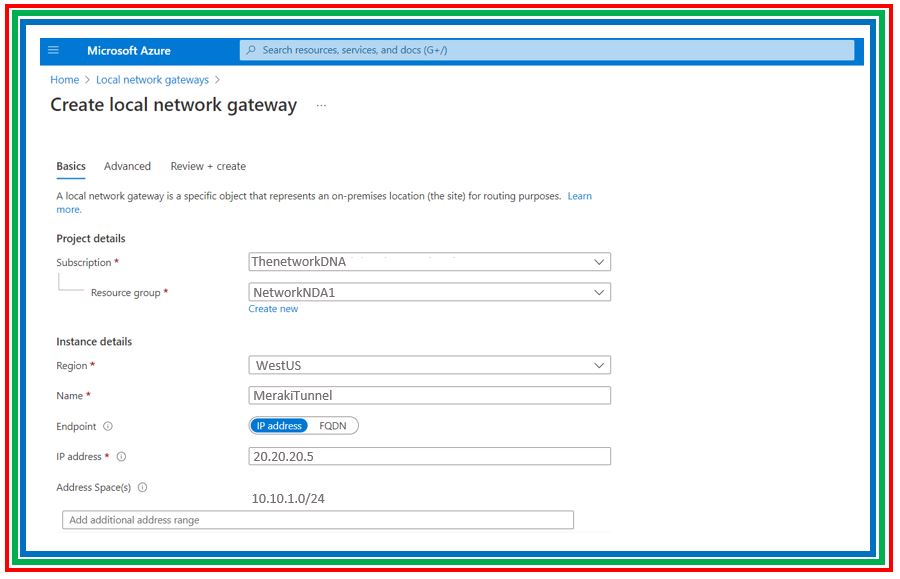 - Create a connection between the Virtual Network Gateway and Meraki MX.