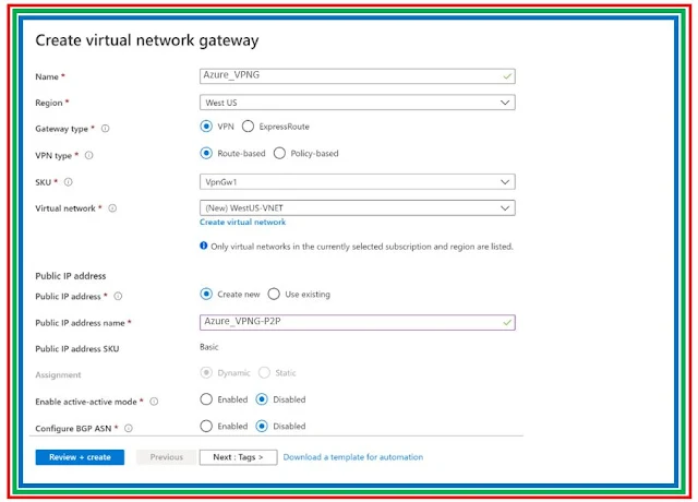 Following the specification of the IP address of the on-premises VPN device to which you will establish a connection, you give the site a name that Azure may use to identify it.