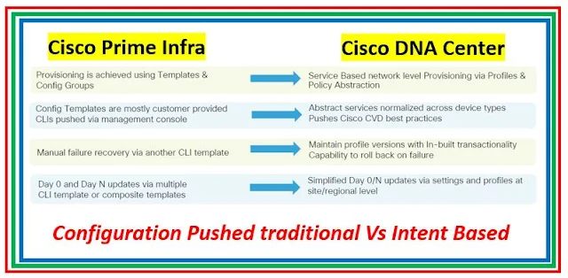 So If you see the above all diagrams the way Cisco Prime Infrastructure is managing the devices is actually a traditional way and Cisco DNA Center is managing using intent based networking which is also called as Next Generation networking.