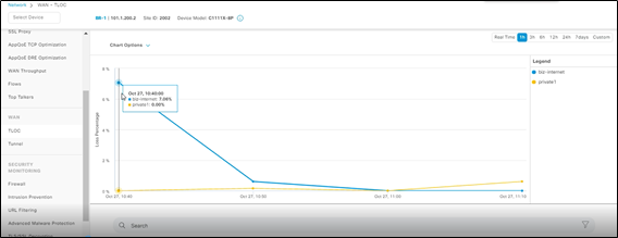 | Figure 3: Branch Internet Link Loss Percentage is 8% compared to 0% loss on MPLS/private 1 TLOC (link) |