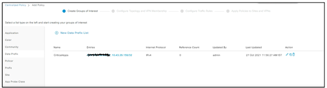 Once the relevant list is created time to define the traffic rules for HRMS application. We are going to define a rule stating all the HRMS application traffic should use MPLS link (private 1 TLOC) and should use the HRMS SLA as per the figure 5. In case of SLA breach perform the load balancing across other link as well as we don’t have any link better than the MPLS ☹.