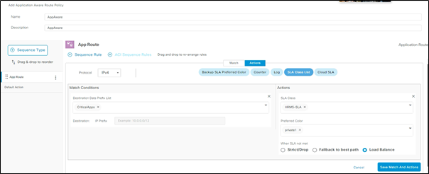 | Figure 8: App-aware routing definition using traffic sequence |