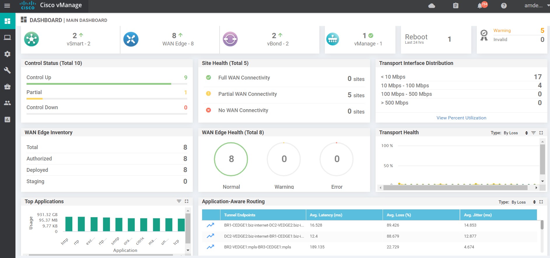 vManage Dashboard |