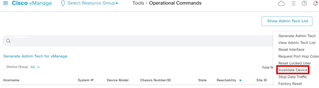 2. For the desired device, click … and choose Make Device Invalid.