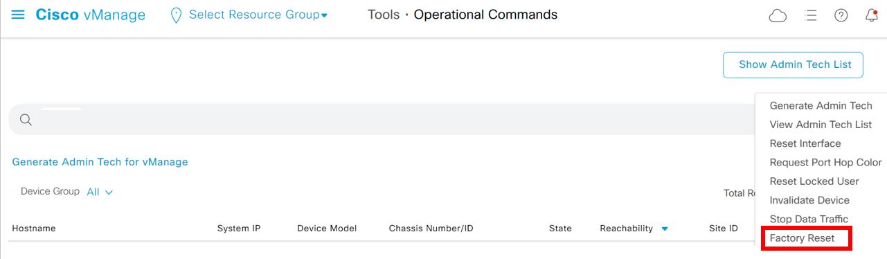 1. From the Cisco vManage menu, choose Tools > Operational Commands.