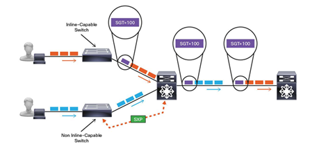Exchange Protocol (SXP) is used for the transportation of SGT. Inline tagging is