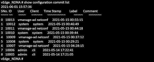 vEdge_NDNA #Show config commit changes 0