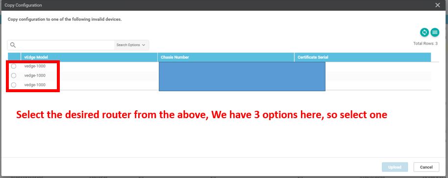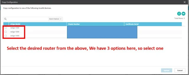 Step 3: In the Copy Configuration window, select the replacement router and update