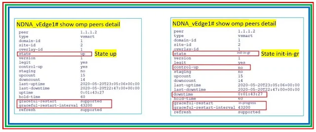 Note⭐ : Graceful restart for OMP protocol is enabled by default between the peers vSmart and vEdge and the restart time is 12 hours but can be increased up to 7 days.