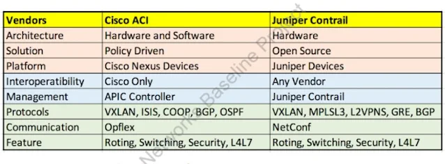 Below is the comparison between Cisco ACI and Juniper Contrail