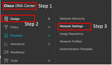 Cisco DNA C --> Design --> Network Settings