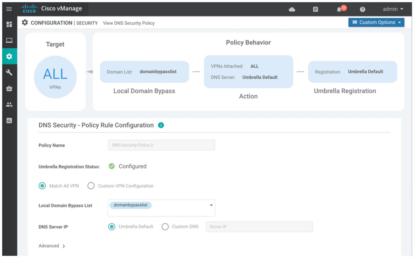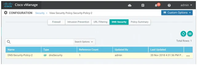 So with the DNS security policy, you can configure your devices with the additional template on the vManage and attach that template with the device as per the normal process.