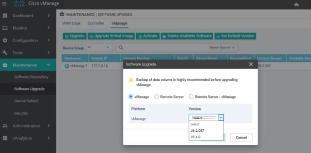 Fig 1.3- Upgrading vManage image first