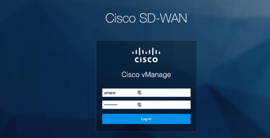 Fig 1.1- Cisco Viptela vManage Login Screen