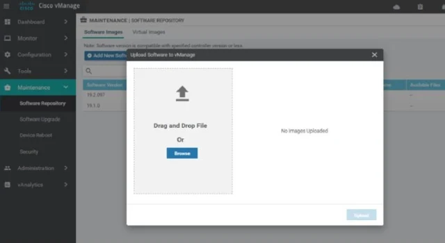 Now check and if required upload new image to the vManage which you would like to upgrade.