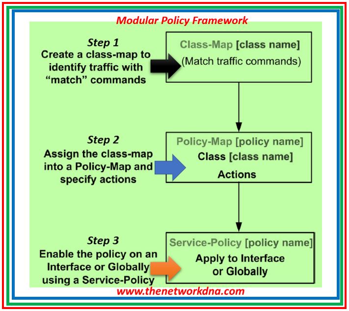 Service-Policy: On an interface or throughout the appliance, the defined policy framework is applied using the Service-Policy component. One Service-Policy is supported globally and by each interface on the Cisco ASA appliance.