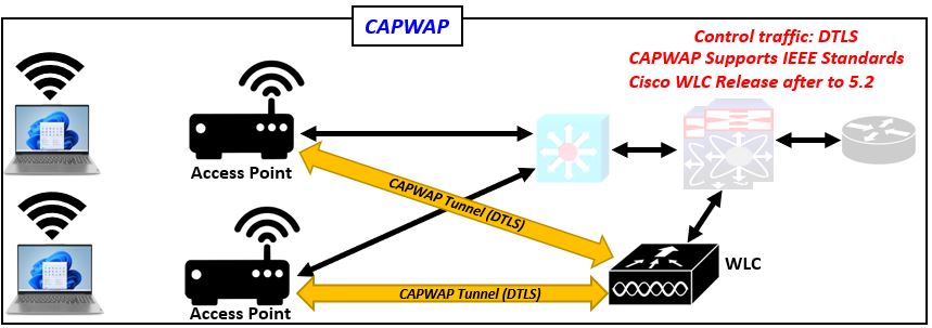 CAPWAP, or Control and Provisioning which is a standard protocol that defines the communication between wireless access points and wireless LAN controllers CAPWAP is intended to help manage and control many APs via a central controller.