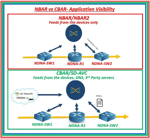 It is important to understand the difference between NBAR and CBAR as the name suggest NBAR stands for Network based application recognition while CBAR is controller based application recognition. Lets talk about these two one by one and will discuss what is important in your network.