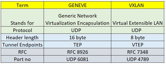 It is important to understand the next generation network virtualization and next generation network virtualization encapsulation as well. VXLAN is very much popular in this domain and GENEVE is a new proposed encapsulation co-authored by VMware, Microsoft, Red Hat and Intel.