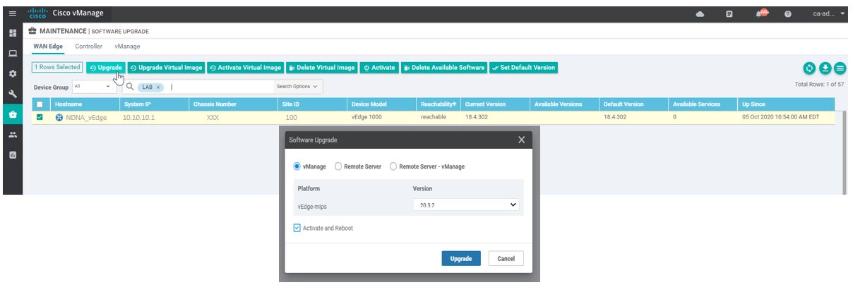 Part 1: Cisco Viptela SDWAN: Upgrade vEdge image from vManage