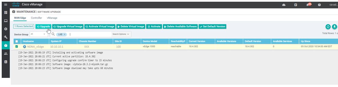 Step 5: Once you clicked on the upgrade, you will see the NDNA_vEdge will start downloading the image from the vManage.