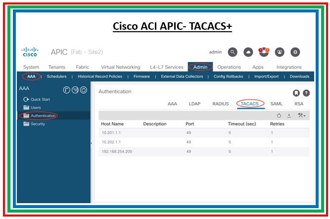 Part 5: Verification of Authentication Policies AAA and TACACS+ on Cisco ACI APIC Dashboard