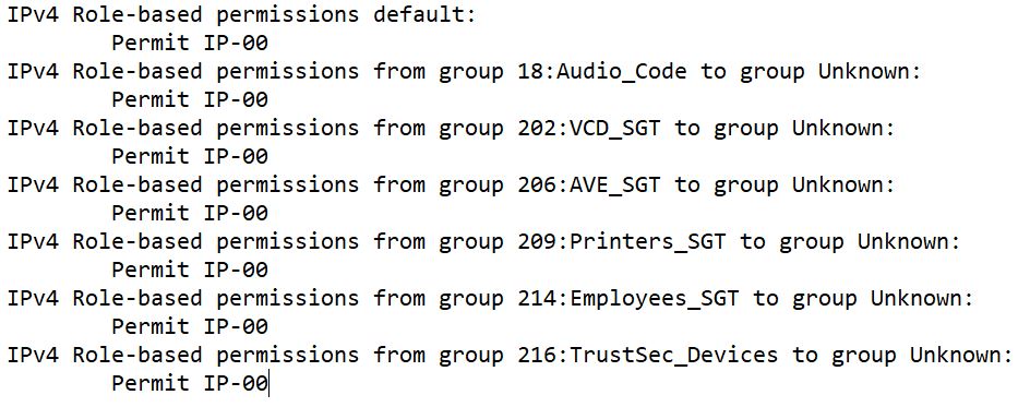 The above command displays TrustSec environment data, useful for identifying scalable groups pushed to edge node.