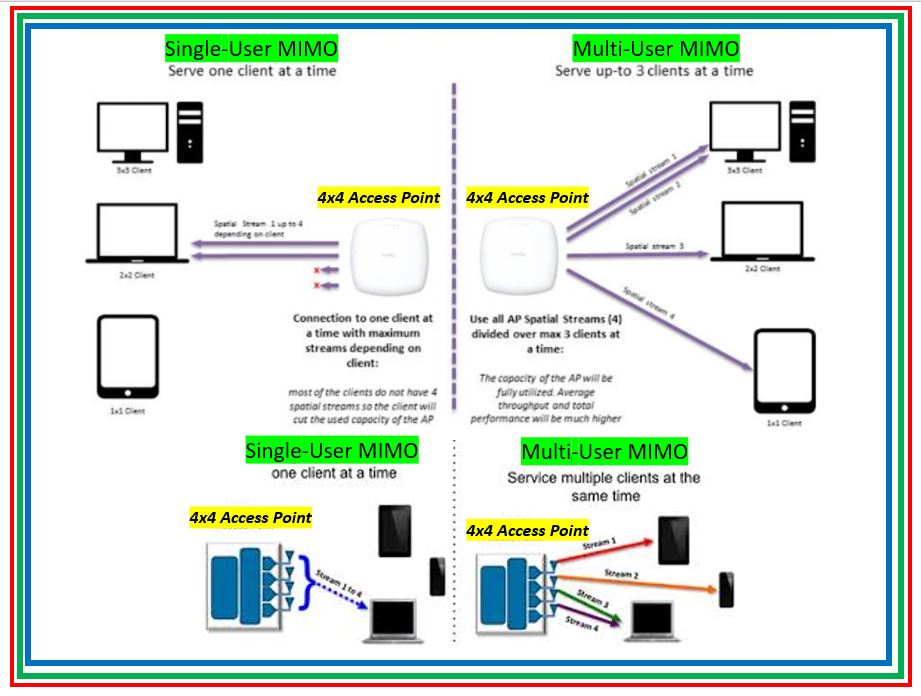 This means Access Point's can transmit to 4 single-stream devices such as 4 smart-phones at once.